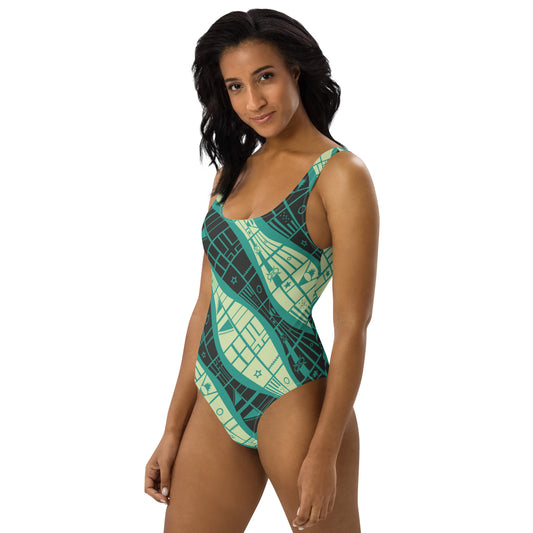 Worldtown Green Flag Waves One-Piece Swimsuit