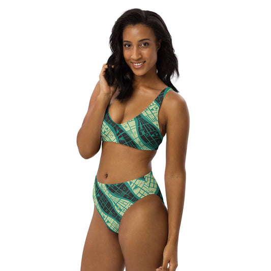 Worldtown Green Flag Waves Recycled High-Waisted Bikini